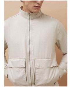 Stand Collar Textured Jacket for Men Modern Everyday Wear