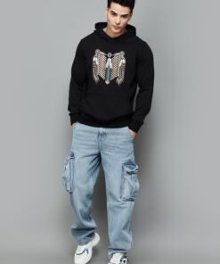 Black Hooded Sweatshirt with Bold Print for Men