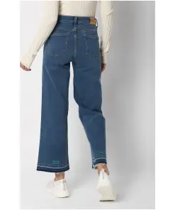 Crafted from premium denim, these jeans feature a high-rise waist that provides a flattering fit while offering ample support. The washed blue hue adds a touch of vintage charm, making them perfect for both casual and dressier occasions.