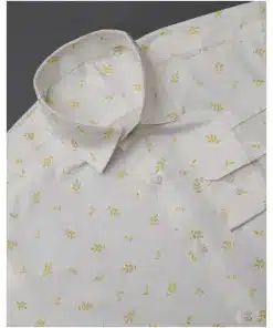 Yellow Leaves Printed Cotton Shirt in Bright White – a harmonious blend of crisp elegance and botanical charm. Immerse yourself in the serenity of bright white, adorned with a delicate dance of yellow leaves that brings a touch of the outdoors to your wardrobe.