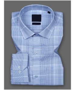 Men’s Off White & Pastel Blue Checkered Cotton Shirt
