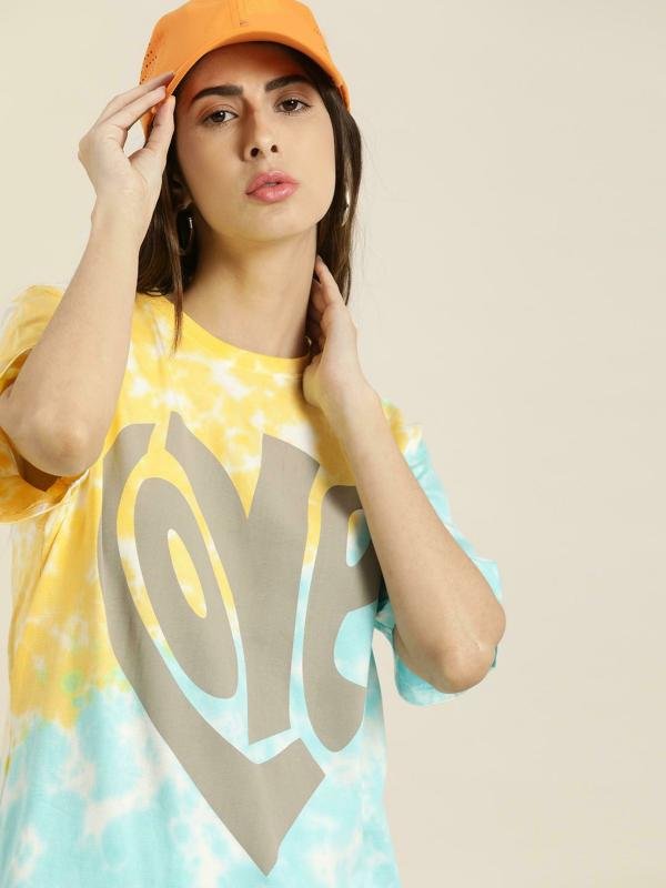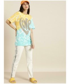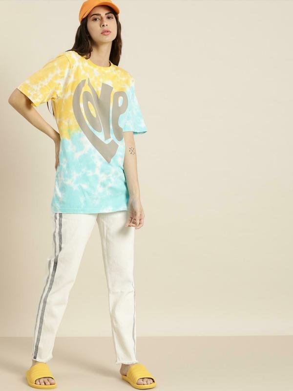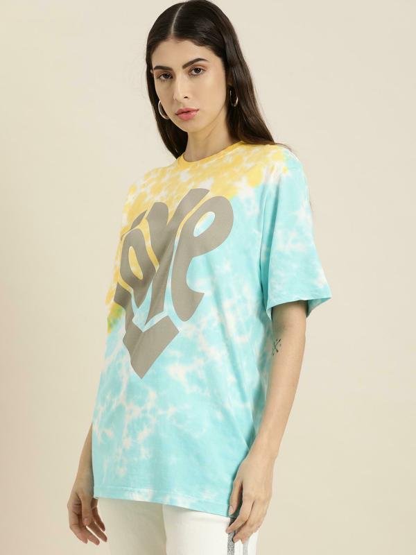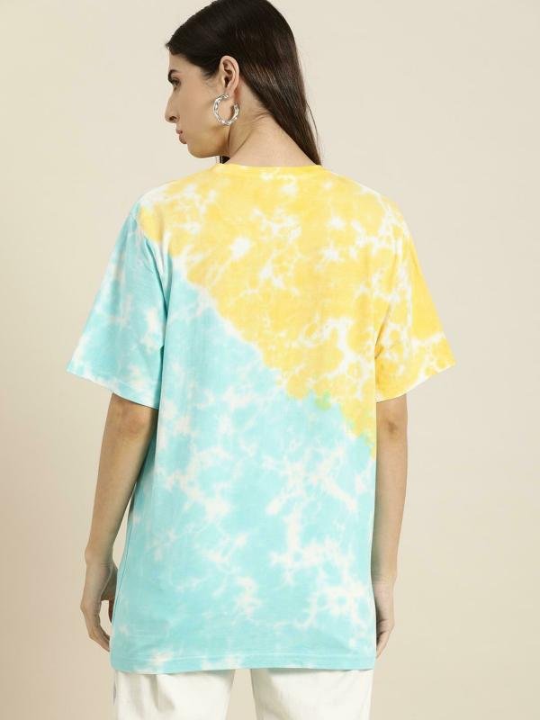 “Women’s Gigantic Tied & Dyed T-Shirt” – a burst of color and creativity that takes tie-dye to new dimensions. This isn’t just a T-shirt; it’s a wearable masterpiece, an embodiment of individuality and the dynamic allure of tied and dyed patterns.
