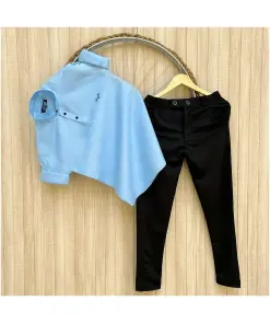 Light Blue Short Cross Kurta Shirt – Casual Cotton Comfort