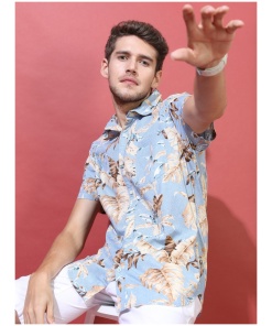 Men Green & Beige Slim Fit Printed Casual Shirt