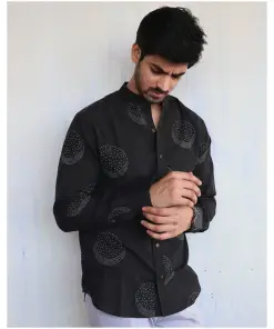 Navy Blue Dragonfly Block-printed Men’s Shirt