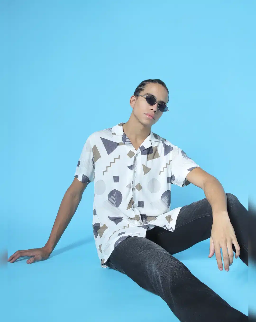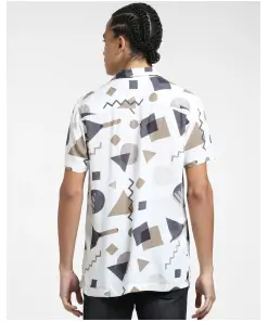 Designed with short sleeves, this shirt offers both comfort and versatility, making it ideal for warmer days or layering under a jacket for cooler evenings. The geometric print adds a dynamic and eye-catching element, ensuring you stand out from the crowd with effortless style.