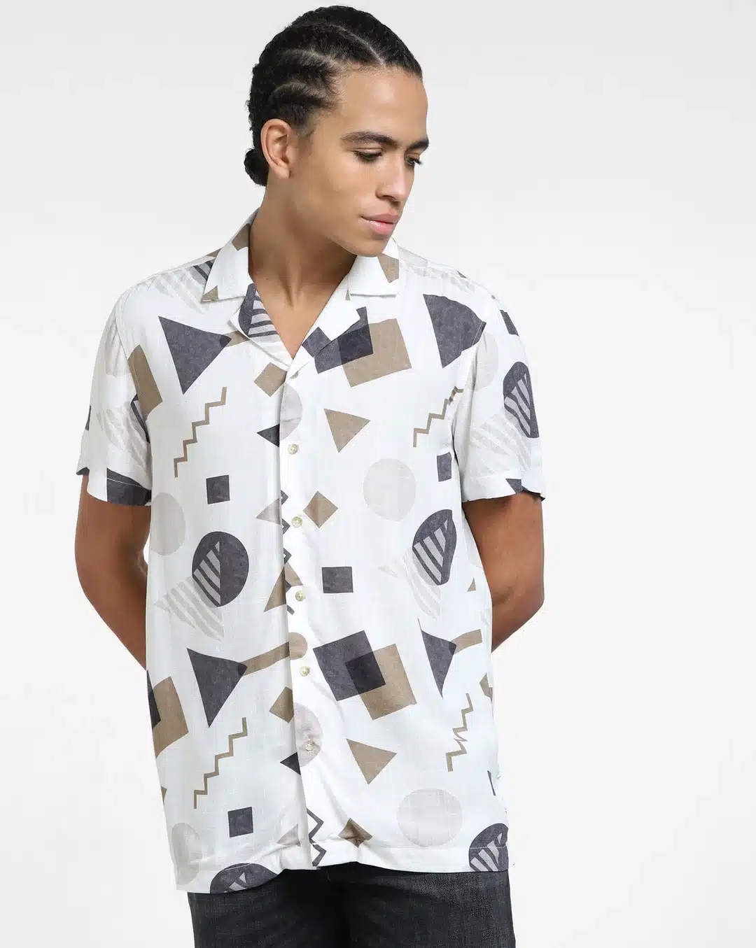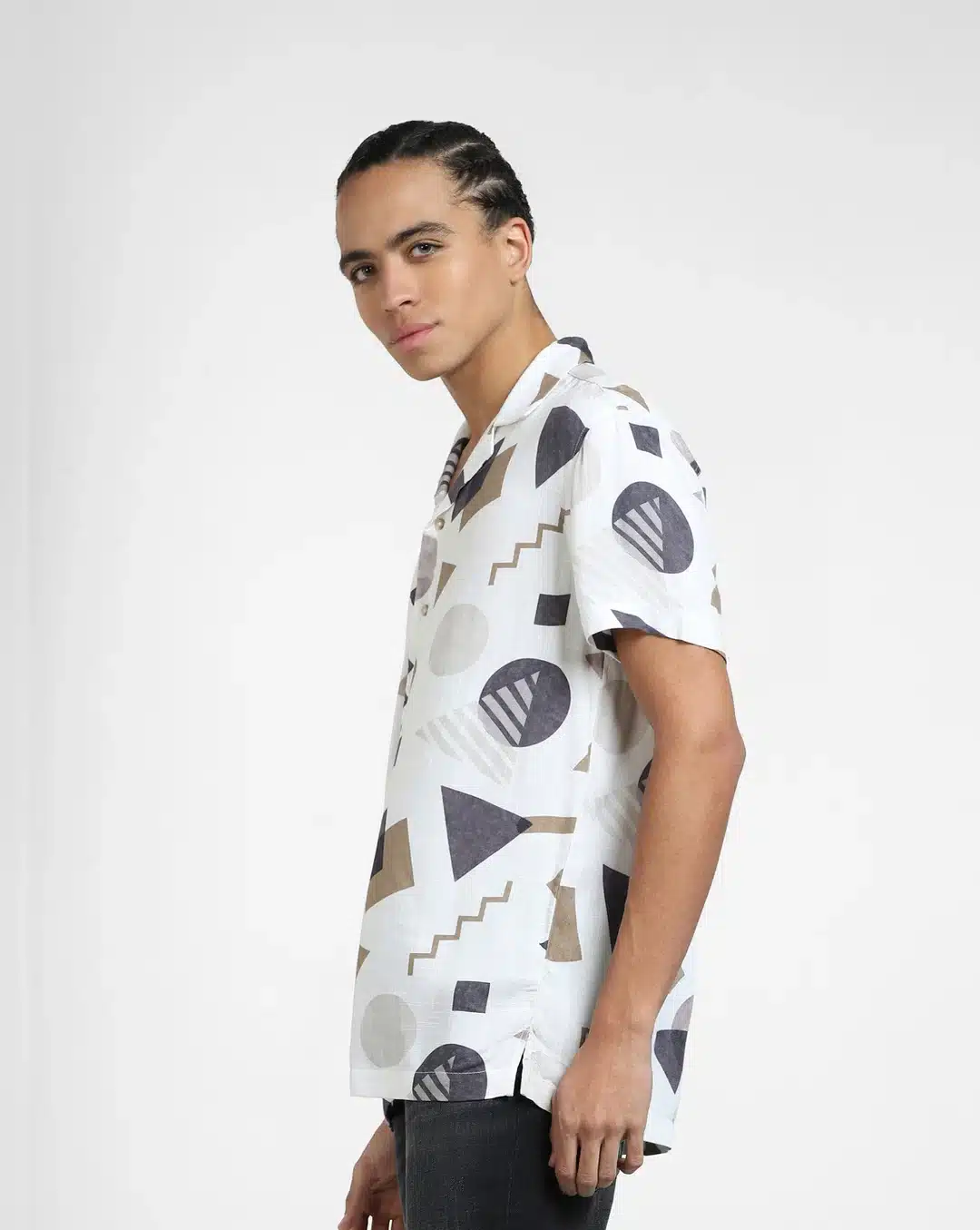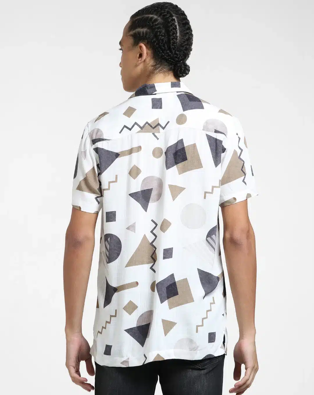With its timeless color palette and contemporary print, the Beige Geometric Print Short Sleeves Shirt is the perfect addition to your wardrobe, offering versatility and style for any occasion.