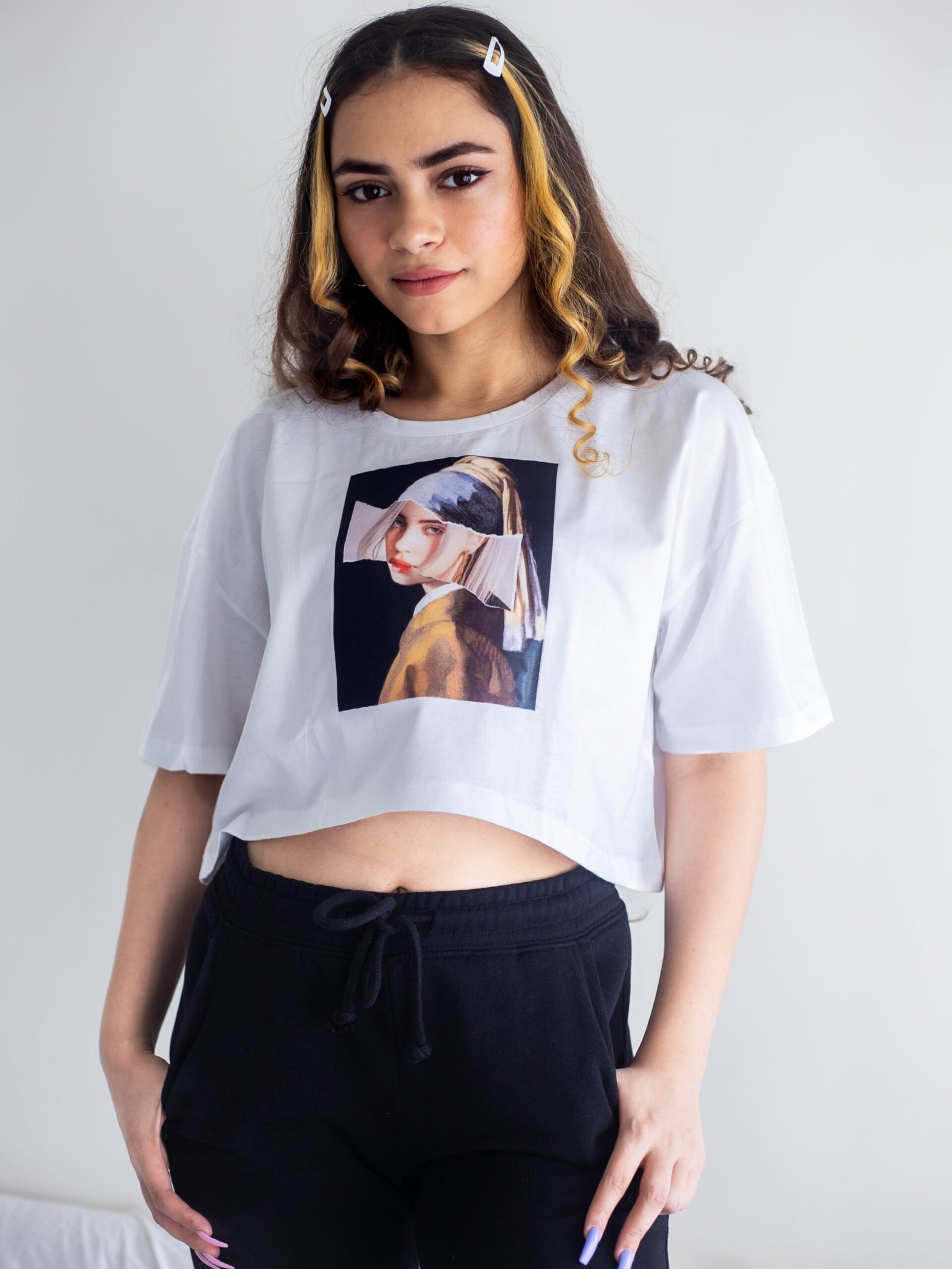 Pair it with your favorite jeans for a laid-back look or combine it with a skirt for a blend of casual and chic. The “Eilis Portrait” Short T-Shirt is more than just a garment; it’s an expression of your unique style and appreciation for wearable art. Embrace the elegance, wear your individuality, and make a statement with a tee that turns fashion into an art form.