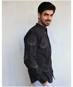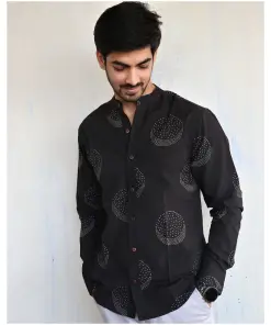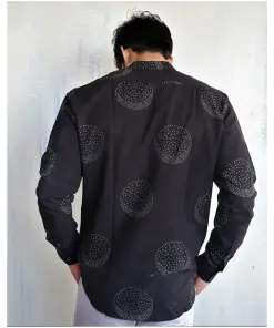 Black Moon Block-printed Men’s Shirt – a celestial-inspired masterpiece that combines timeless elegance with artistic expression. Crafted with meticulous attention to detail, this shirt is a celebration of craftsmanship and creativity, making it a standout piece in any discerning gentleman’s collection.