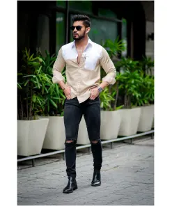 Embrace sophistication with the Camel White Designer Cotton Full Sleeve Shirt – because true style knows no bounds.