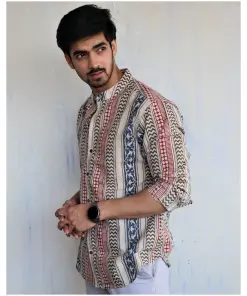 Pair it with tailored trousers for a polished look, or dress it down with your favorite jeans for a more relaxed vibe. With its timeless appeal and artisanal details, the Ivory Block-printed Men’s Shirt is sure to become a cherished addition to your wardrobe.