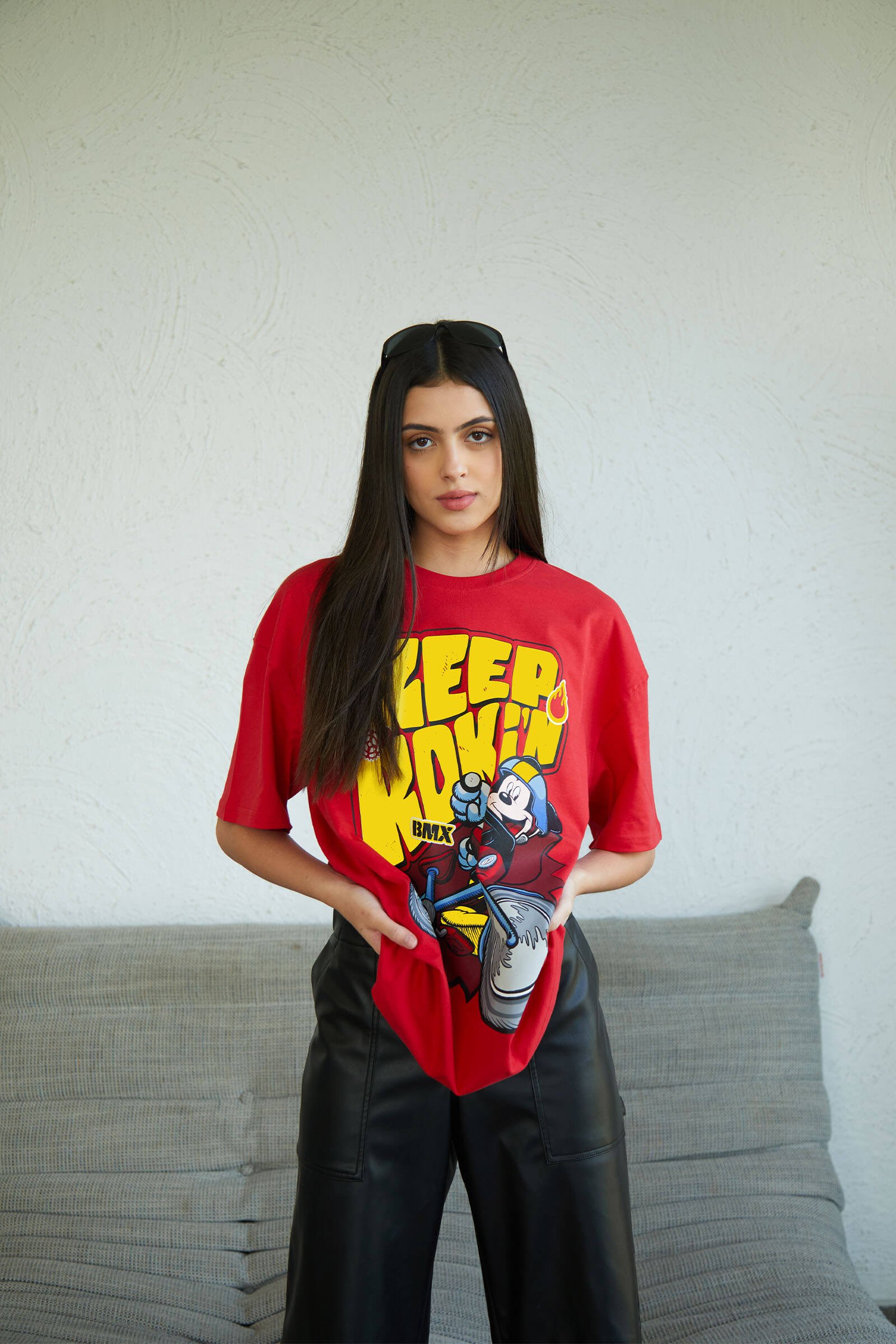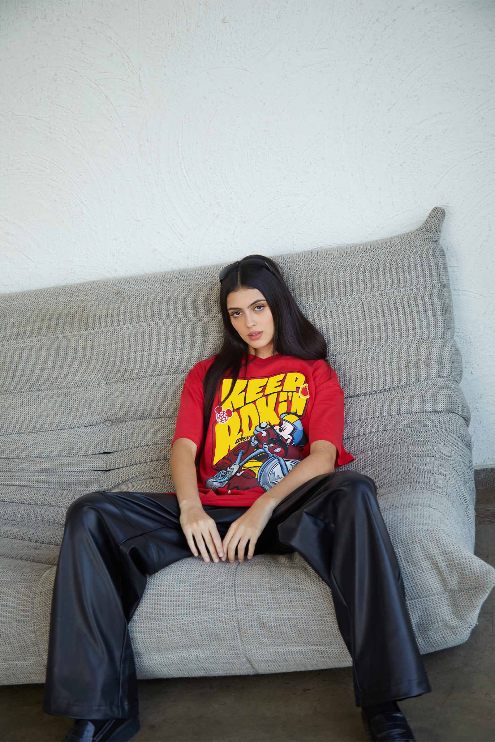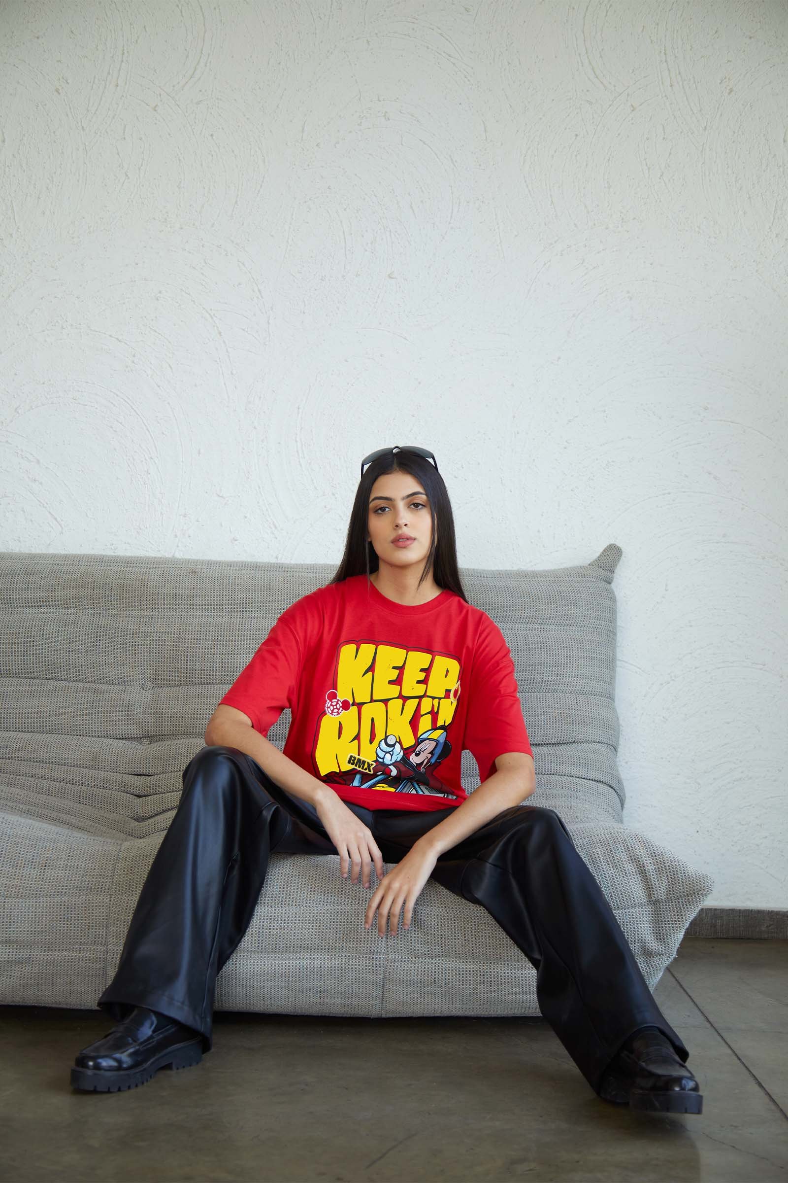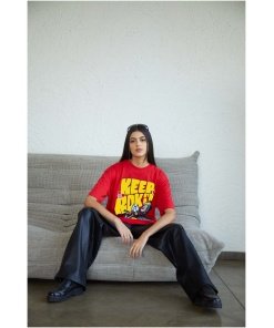 Envision yourself in this gigantic tee, where the “Keep Rocking” design takes center stage, inviting you to embrace the free-spirited vibe of the rock music scene. The oversized silhouette adds a touch of drama, allowing you to make a bold statement with both size and style.