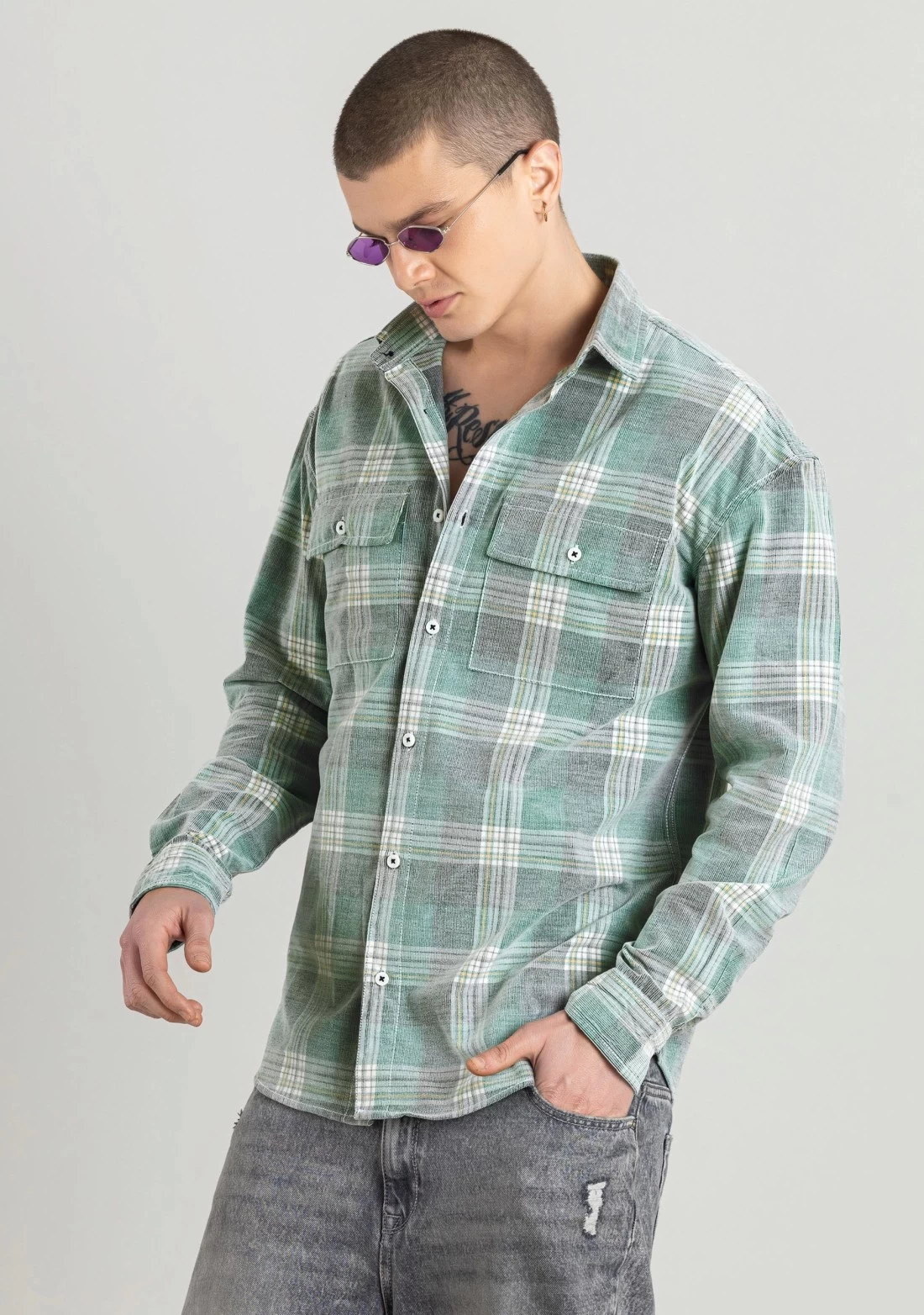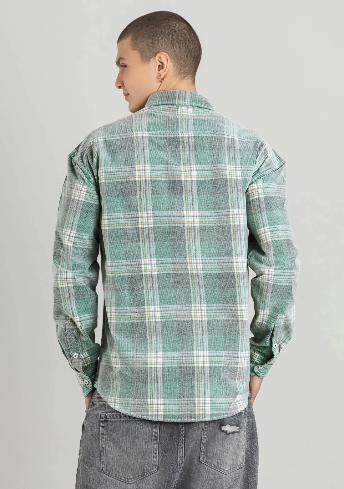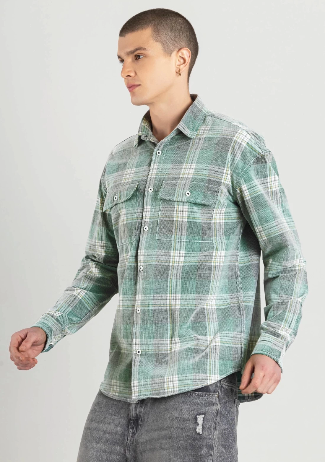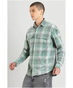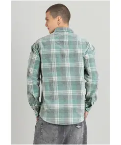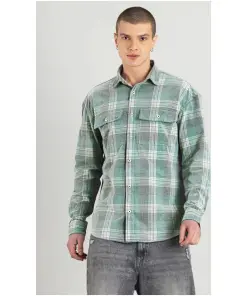 Light Green Regular Fit Corduroy Men’s Check Shirt