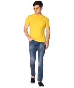 Classic Polo Collar Yellow Cotton T-Shirt for Men – a timeless and vibrant addition to your wardrobe that seamlessly combines comfort with sophisticated style. Elevate your casual look with this versatile half-sleeve T-shirt designed for the modern man.