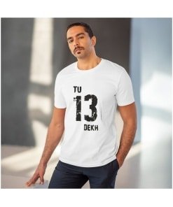 Upgrade your casual collection with a T-shirt that not only follows the latest trends but also ensures you stand out with a touch of wit and individuality. Embrace contemporary style and humor with the Men’s White PC Cotton ‘Tu 13 Dekh’ Printed T-Shirt – because true fashion is about expressing yourself with charm and a sense of fun.