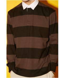 Crafted with meticulous attention to detail, this T-shirt features cuffed sleeves that bring a tailored finish to your look. The mocha stripes add a touch of richness and warmth, making it the perfect choice for those who appreciate subtle elegance in their everyday wear.