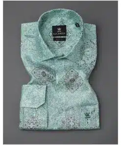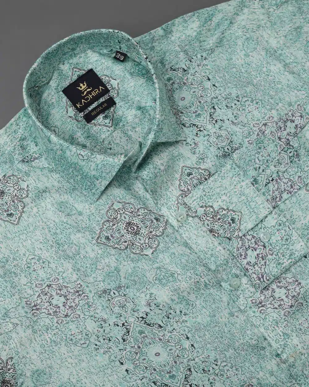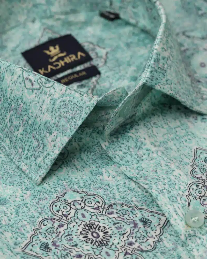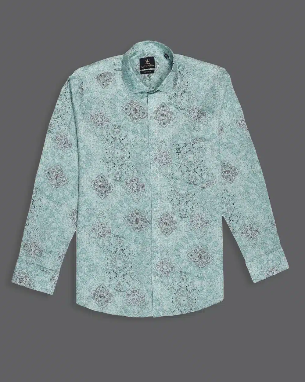 Floral Patterned Seafoam Cotton Shirt – a breath of fresh air for your wardrobe that effortlessly combines the tranquility of seafoam with the vibrant beauty of floral patterns. Immerse yourself in the soothing hues and botanical charm of this shirt that’s perfect for both casual and refined occasions.