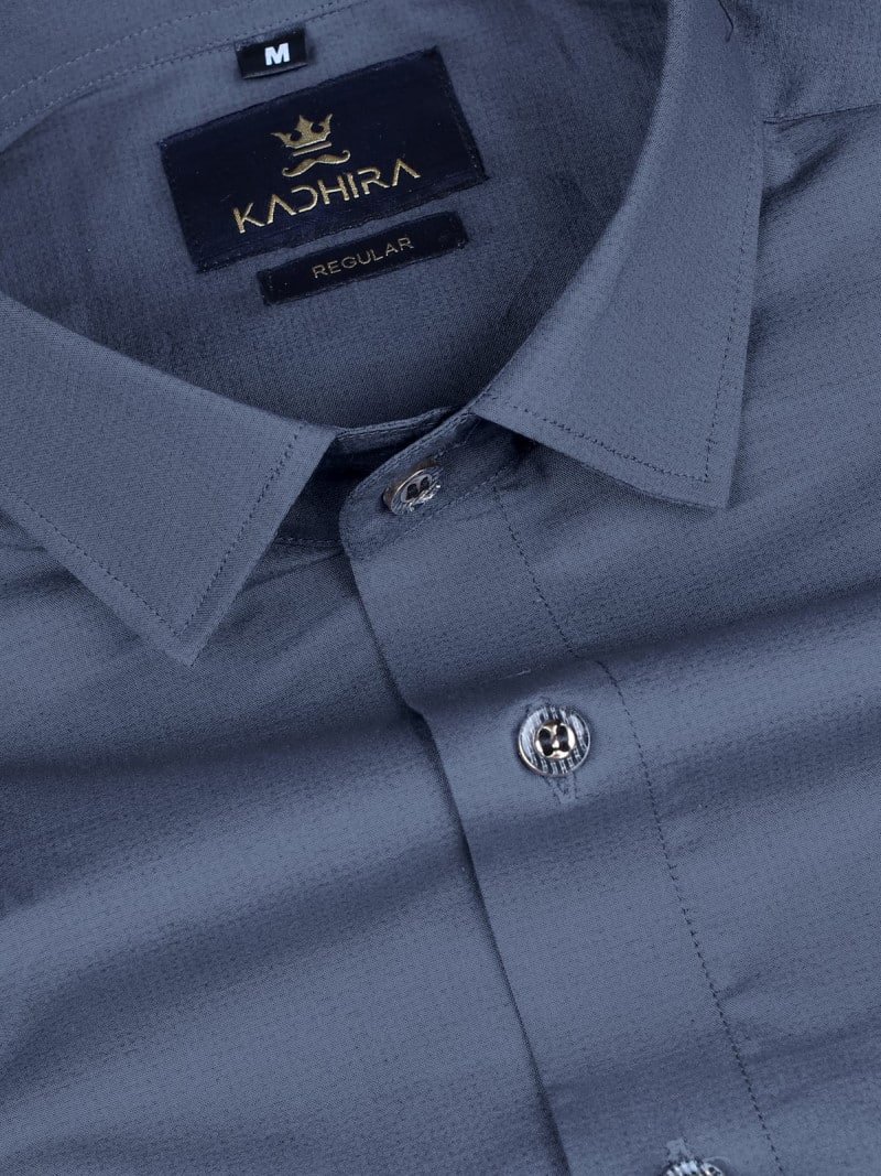Solid Dobby Cotton Shirt in Gray – a modern classic that effortlessly combines sophistication with contemporary flair. Immerse yourself in the sleek charm of solid gray, elevated by the subtle texture of dobby cotton for a shirt that defines refined elegance.