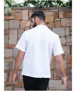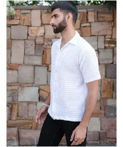 Pair it with jeans or chinos for a relaxed yet polished look that’s sure to turn heads. Embrace your individuality and make a statement with the White Oversized Checks Popcorn Texture Half Sleeves Shirt – the perfect blend of classic charm and modern flair.