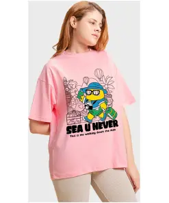 Crafted from soft and breathable fabric, this oversized tee offers a relaxed fit that’s perfect for lounging or adventuring. But what truly sets it apart is its captivating graphic print, featuring a dreamy depiction of the sea in shades of pink.