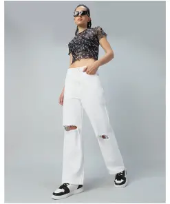 Pair them with a sleek bodysuit and heels for a night out, or dress them down with a casual tee and sneakers for a laid-back weekend look. Embrace the unexpected with Women’s White Baggy Straight Fit Distressed Jeans and let your fashion-forward spirit shine!